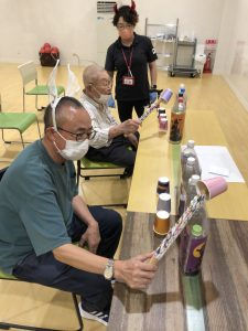 「棒ですくうまではいいんだけど、ここからが難しいわぁ」 「スっと棒が抜ければいいんだけどなかなか上手くいかないわねぇ」 など難しいという声が多かった中、 手際よく15秒という好タイムを出した方もいらっしゃいました。 今回も楽しんでいただけて何よりです! ハッピーハロウィン!