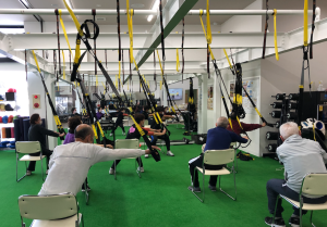 機能訓練ではTRXを使用し、主に全身のストレッチを行なっております!